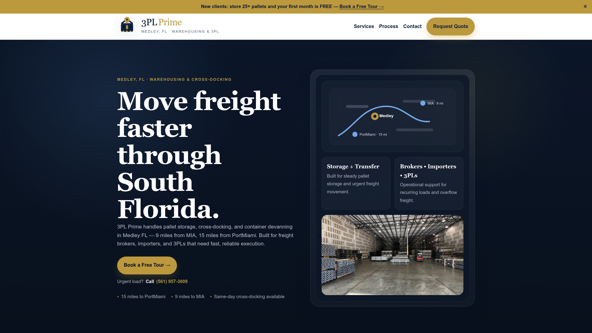Book a free facility tour at 3plprime.com or call (561) 957-3009. See your next warehouse before you commit.
